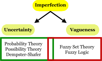 Fuzzy logic and probability theory are the most powerful tools to overcome the imperfection (see Fig.1). Fuzzy logic is mainly responsible for representation and processing of vague data (ill-defined, fuzzy). Probability theory is mainly responsible for representation and processing of uncertainty (randomness).