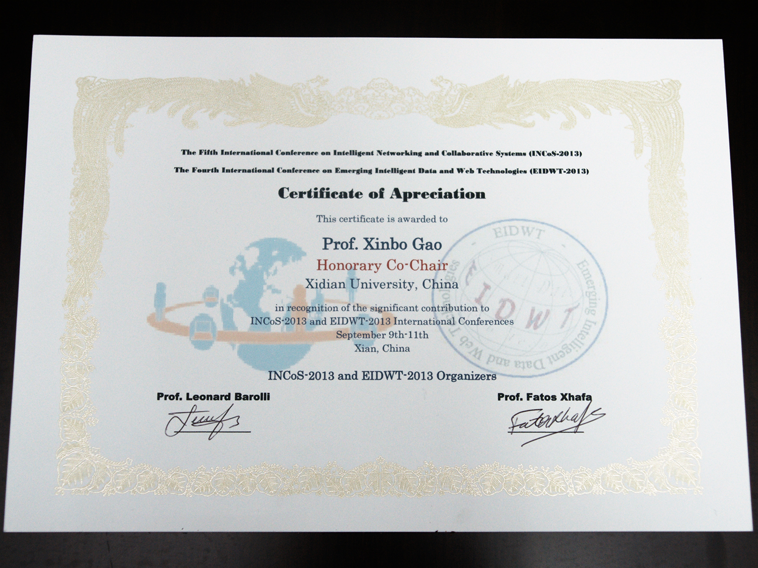 Professor of Ministry of Education, China, 2013