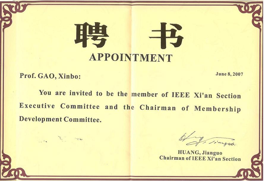 the Academic Committee, Xidian University, 2014