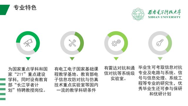 本專業始建于1952年由我校創建的全國第一個雷達工程專業,經過60多年的建設,本專業2007年獲首批國家級第一類特色專業,2002年獲首批陜西省名牌專業,是國家“985平臺”重點建設專業。