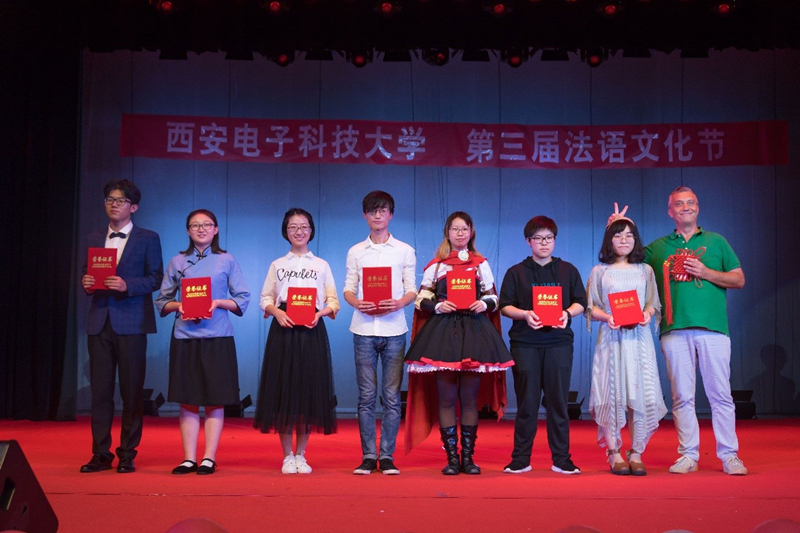 西電新聞網訊(通訊員 郭然 張燕菲 牛四強)為豐富校園文化生活,激發同學們學習法語的熱情,2018年5月16日晚,電子工程學院于南校區大學生活動中心小劇場成功舉辦了“西安電子科技大學第三屆法語文化節”。電子工程學院副書記張海戰,電子工程學院教師牛四強,法國尼斯綜合理工副校長Philippe Lorenzini,法國綜合理工集團教授Sylvain Toru、Martin Kogelschatz、Herve Tortel及西安外國語大學法語外教等教師代表出席此次文化節。