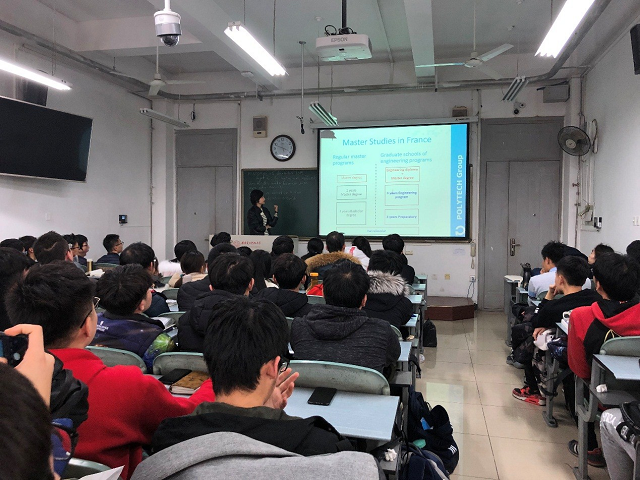 (通訊員 吳媛媛 殷樂雨)12月19日下午,在南校區C樓423教室,法國綜合理工聯盟歐盟獎學金負責人尹娜老師為中法合作辦學項目2018級新生做了一場精彩生動的宣講會,旨在讓18級新生對法國的工程師教育有更進一步的了解,為學生們日后的學習增強信心,做好規劃。