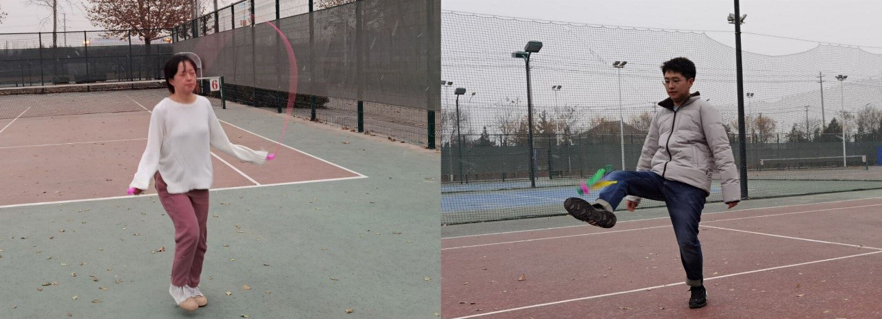 跳繩和踢毽子比賽,在規定一分鐘時間內完成次數最多者獲勝。冬日的南校區運動場上,參加跳繩比賽的同學們個個身輕如燕,在繩間穿梭自如,一根根跳繩在他們的腳下靈活地上下翻飛;參加踢毽子比賽的同學們全神貫注,眼睛始終跟隨毽子轉動,不停變化著姿勢,將毽子穩穩控制在腳尖,運動員們緊張有序的展現自己的實力。最終,2019級姚逸卓同學獲得跳繩比賽女子組第一名,2019級盧浩翔同學獲得跳繩比賽男子組第一名;2019級李佳惠同學獲得踢毽子比賽女子組第一名,2020級李赫哲同學獲得踢毽子比賽男子組第一名。