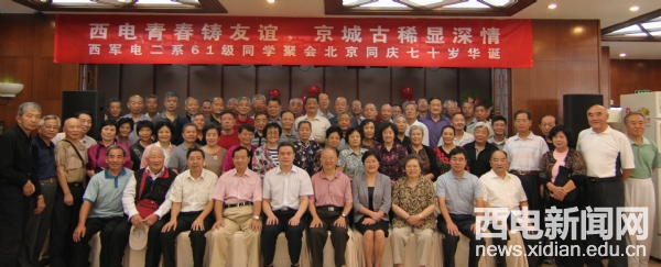原西軍電2系61級校友在京聚會 學校領導到會祝賀 2020-10-23 15:34:00 瀏覽次數: 西電新聞網訊(通訊員 李耀平)9月6日,原“西軍電”2系61級70余位年過古稀的校友在京歡聚一堂,舉辦了“西電青春鑄友誼、京城古稀顯真情”同慶70歲華誕的校友聚會。學校黨委書記陳治亞,校長鄭曉靜,副校長張培營、李建東到會祝賀。 “西軍電”時期在校任教的著名通信與計算機網絡專家謝希仁教授及指導員代表應邀出席。學校領導向前輩校友致以敬意,表達了母校對校友的關心,并祝福各位校友身體健康、幸福長壽。 來源:http://news.xidian.edu.cn/view-34877.html 上一篇文章:2系731班校友回母校聚會捐種銀杏樹 下一篇文章:校友包為民院士作專題報告暢談航天工程認識實踐