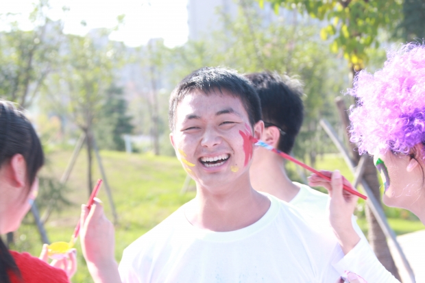 所有選手跑完全程5公里后,在留影墻前留影紀念。隨后,終極color派對正式開始,歡快的樂曲為選手的勝利歸來慶祝喝彩。每個人身上像調色板一樣色彩繽紛,伴隨著音樂的節奏,共同拋灑彩粉,將整個會場推向最高潮,整個南操場上空交織著五彩斑斕的青春色彩。參加完活動的電院張寧祥老師最后說到:“color run是我在西電參加過很多活動里最令人開心、最能激發熱情、最能展現活力的活動之一。五公里跑步的過程本身就能帶給人們正能量,再加上臉上衣服上身上炫目的顏色、激揚的樂隊演出,每個人臉上都有開心的笑容,最后的集體狂歡尤其令人印象深刻,所有人都肆無忌憚地揮灑著青春的色彩。”