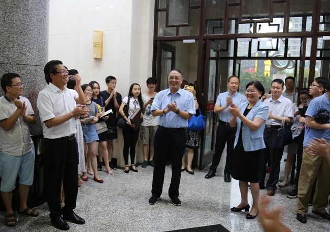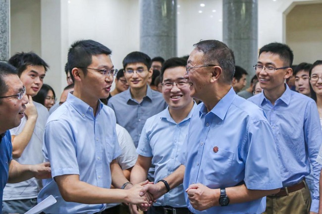 8月20日,結束了西商大會兩天密集行程的柳傳志重回母校,看望在校期間指導員,為創新創業學生代表鼓勁,并受聘為西電創新創業學院名譽院長。黨委書記、校長鄭曉靜院士,黨委副書記龍建成陪同行程。