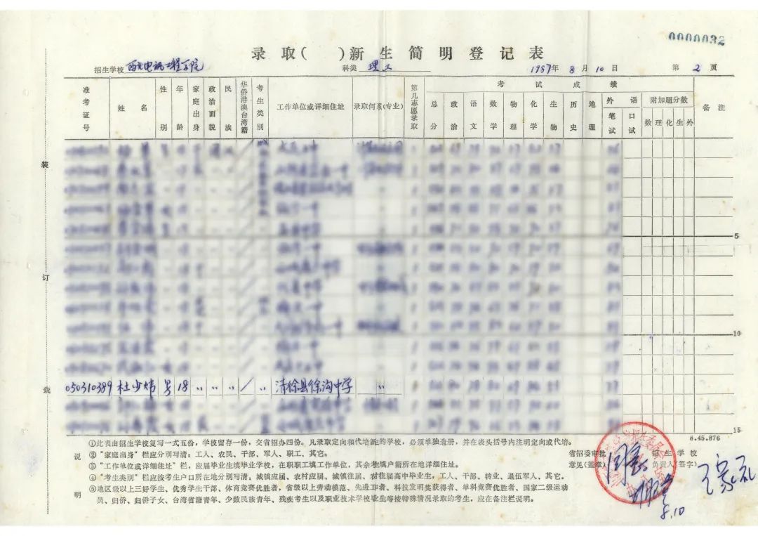 ▲杜少煒錄取登記表(西電檔案館館藏)