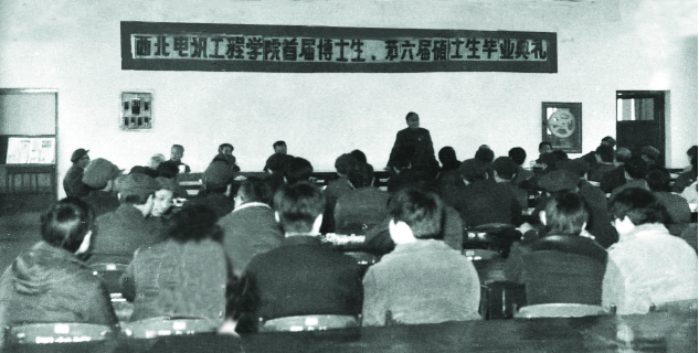 ▲學校首屆博士生、第六屆碩士生畢業典禮會場。(西電檔案館館藏)