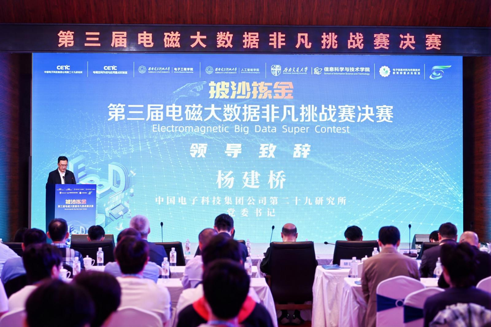 西電電院網訊(通訊員馬思翀)4月11日下午,第三屆“電磁大數據·非凡挑戰賽”決賽活動在西電北校區舉行。此次大賽由中國電子科技集團公司第二十九研究所(以下簡稱“二十九所”)、西電等單位主辦,西電電子工程學院承辦。二十九所黨委書記楊建橋、學校黨委書記任小龍致開幕詞,黨委副書記、紀委書記郭俊參加活動。