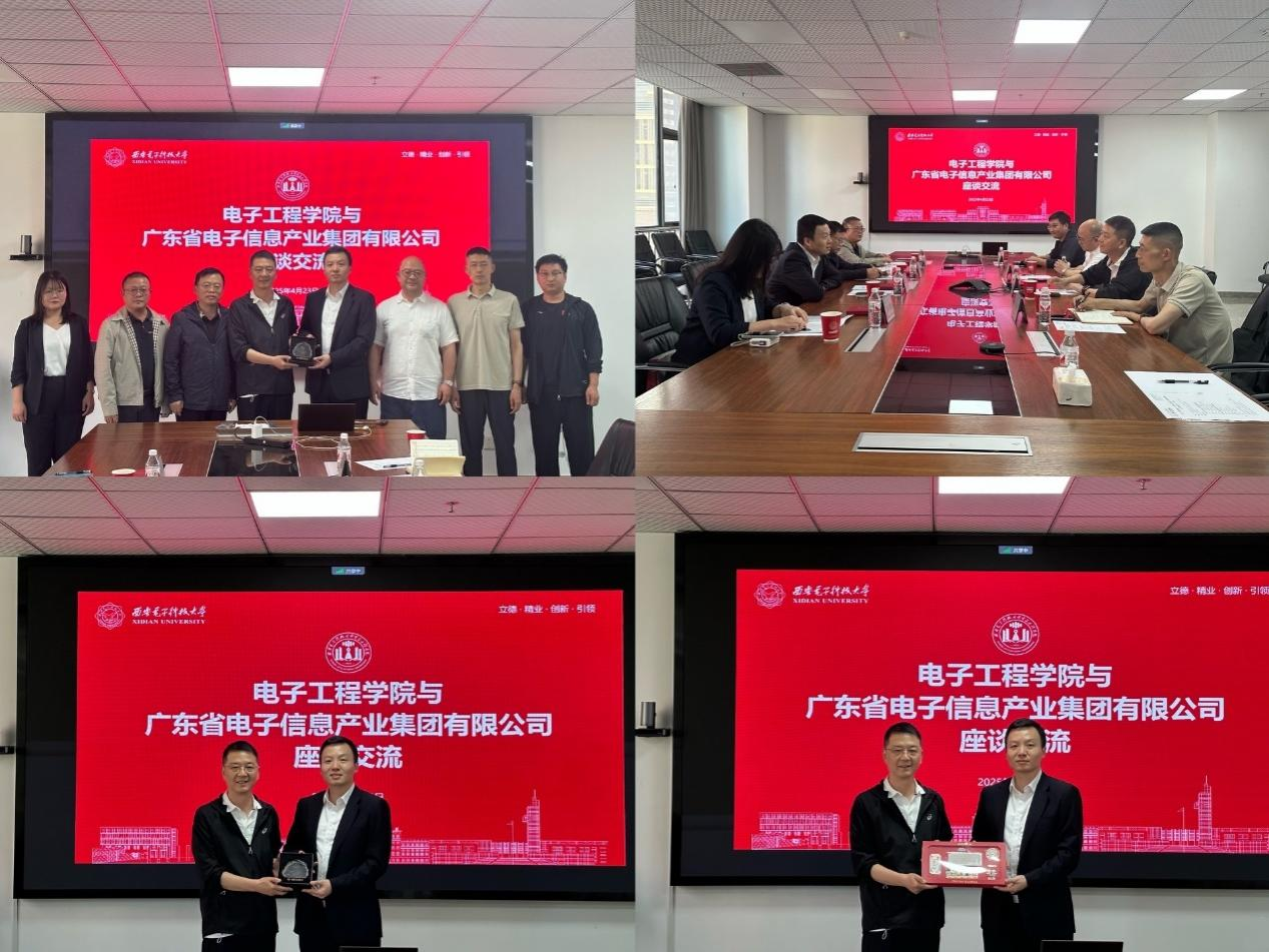 西電電院網訊(通訊員白揚華)4月23日下午,廣東省電子信息產業集團有限公司(以下簡稱“集團”)黨委書記、董事長王佳,黨委副書記張險峰,紀委書記蟻昉,人力部副部長陳月娉一行來訪電子工程學院,圍繞科技創新、人才培養、產學研合作、產教融合等議題開展交流座談。學院黨委書記楊光暐,副院長梁繼民,黨委副書記賀振航以及輔導員代表參加座談。
