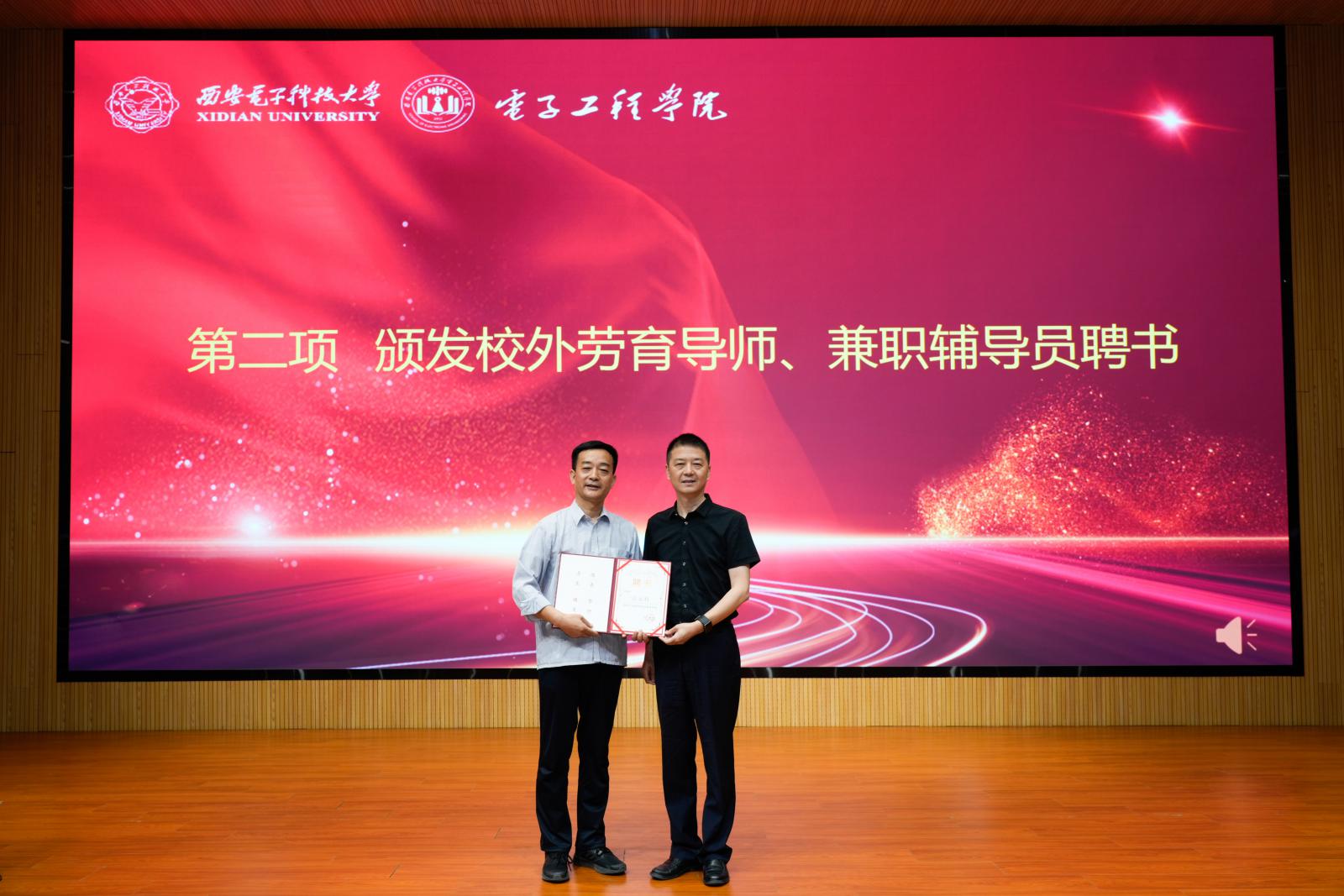 楊光暐代表學院對彭永利的到來表示熱烈歡迎與誠摯感謝,并為彭永利頒發“校外勞育導師”聘書,為南衛東頒發“校外兼職輔導員”聘書。他表示,學院聘任兩位專家擔任校外導師和兼職輔導員,既是重視勞模精神的傳承發揚,也是學院與長嶺電氣深化產教融合,進行“雙師型勞育”的創新探索。希望同學們從勞模勵志故事中汲取奮進力量,堅定理想信念,樹立正確勞動觀念,培養勞動習慣和勞動技能,讓“崇尚勞動、尊重創造”成為電院學子的鮮明標識。