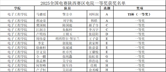 ※2025 年陜西省工科高校校際聯賽:我院 51 支隊伍參賽,獲特等獎 6 項、一等獎 10 項、二等獎 3 項、三等獎 5 項,特等獎與獲獎總數全校第一;王水平、米月琴、徐茵、王新懷、陳蕾等六位老師獲評“優秀指導教師”。
