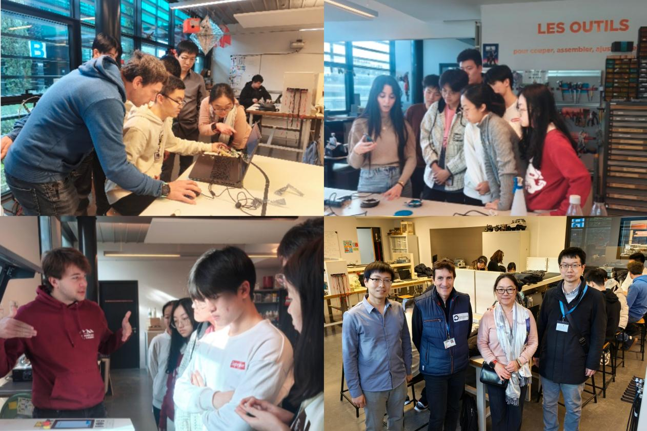 在“智能機器人實驗室”,21名學生自學編程、分組合作,從理論學習到實踐制作,順利完成智能記憶體開發項目。同學們在教師指導下完成電路設計、功能驗證、3D模型打印和焊接封裝等環節,深度學習和體驗從設計到制作的全流程產品開發,最終全部完成項目任務。實訓期間,同學們自學Arduino編程語言,學習使用基于不同材質的3D打印和激光切割設備,提高了動手能力,豐富了實踐經驗。校長Alexandre教授走訪實訓現場,歡迎電院訪學師生,查看科創訓練成果。