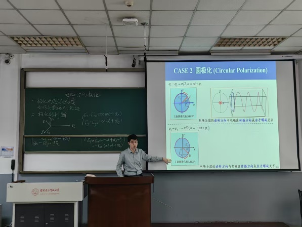 張歡歡結合自身的參賽經歷和教學實踐,從競賽規則、賽前選題、課件設計、教學展示技巧等方面為與會教師帶來了精彩的分享。張歡歡表示,好的選題事半功倍,內容要難度適中、充實飽滿,易于和工程案例結合,方便課程引入,課件應結合動畫、圖片等素材,引人入勝。教學展示應結構完整,有問題引入、有核心內容、有例題、有應用、有小結等。隨后,張歡歡基于《電磁場與電磁波》課程,現場進行教學展示,并強調了語言表達的清晰流暢、教態的自然大方以及與學生的有效互動等方面的重要性。