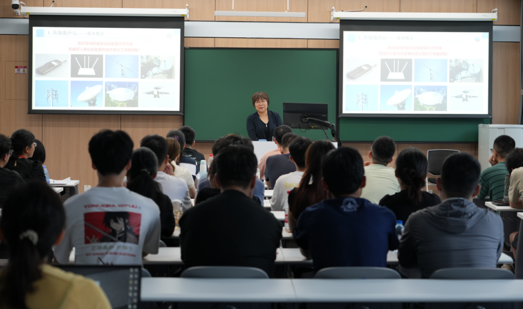 暑期學校邀請了中國工程院院士、北京航空航天大學蘇東林教授,中國科學院院士王中林,中國科學院院士、南京大學顧寧教授,電子科技大學副校長胡俊教授、西湖大學副校長仇旻教授、西安電子科技大學天線與微波技術重點實驗室主任劉英教授等11位電磁領域頂級專家為學生授課。劉英圍繞“天線引方向,電磁連你我”,從天線發展歷史出發,講述了天線在5G、雷達、隱身等系統中的應用,介紹了天線未來發展方向。課程內容涵蓋專業理論與前沿創新,學生們表示受益匪淺,被天線的魅力深深感染。課后,劉英與暑期學校師生親切交流,勉勵學生們傳承科學家精神,勇擔科技報國使命,投身電磁強國建設。