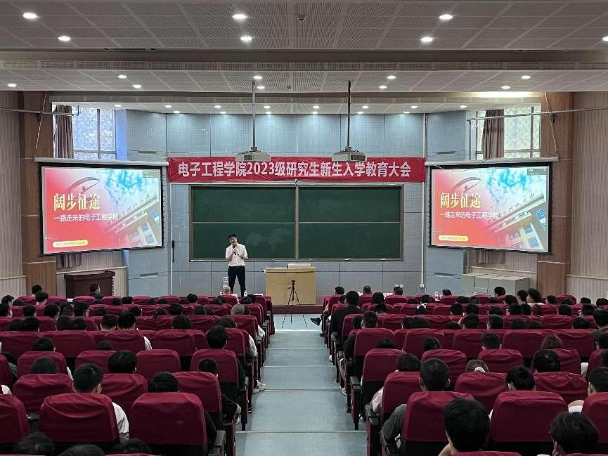 電子工程學院2023級新生入學教育大會通過主會場和分會場的形式召開,共計800余名同學參加。
