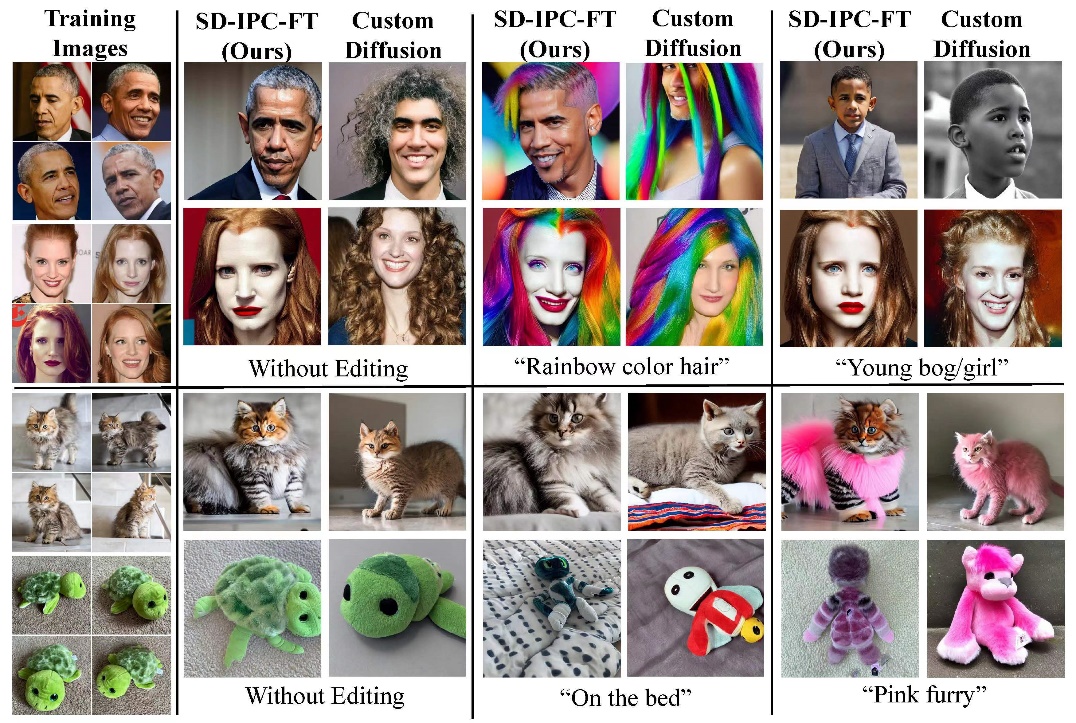 丁宇軒的論文《The CLIP Model is Secretly an Image-to-Prompt Converter》關注“文本到圖像”生成模型StableDiffusion,通過對其特征空間的分析探究了模型生成原理,使用零成本閉式解實現了參考圖像對輸入文本的替換,將StableDiffusion模型轉換為“圖像到圖像”生成模型,并拓展了其多模態輸入能力(文本+圖像)。相較于對比方法StableDiffusion-Reimagine,減少了20萬GPU小時的訓練時間,并提高了圖像編輯效果。實驗表明本文提出的閉式解可以作為模型微調的良好初始化,使用少量樣本即可使模型關注不同的圖像特征,并且可以在極少訓練次數下完成定制圖像生成任務。