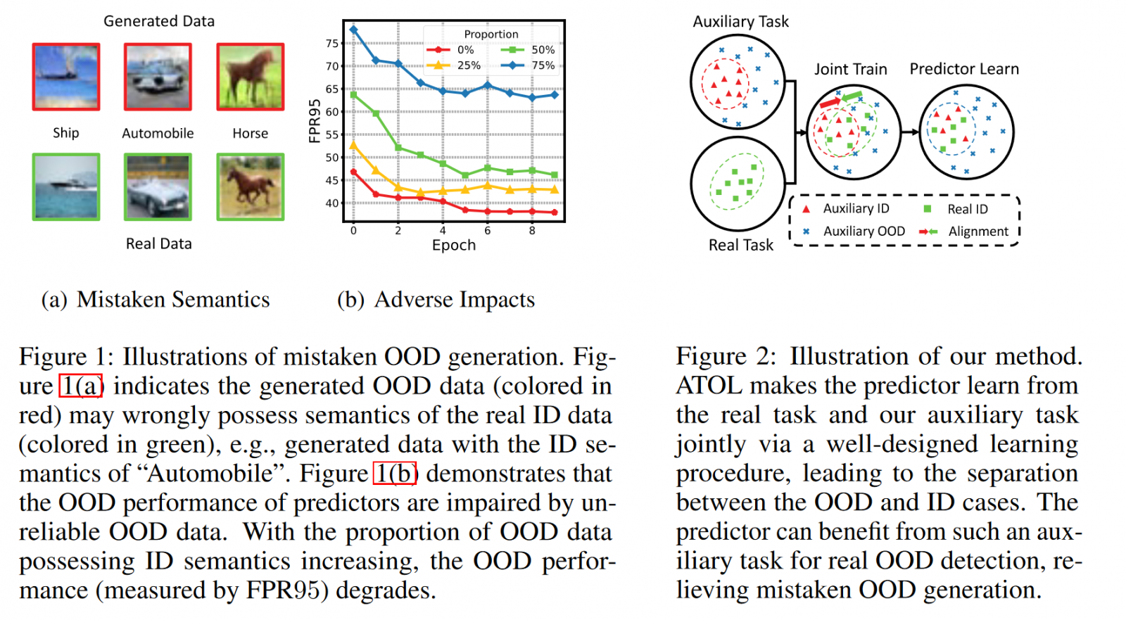 鄭皓天的論文《Out-of-distribution Detection Learning with Unreliable Out-of-distribution Sources》創造性地提出了一個分布外學習框架ATOL,簡單引入了一個生成的輔助任務,并與實際任務進行對齊訓練,使得模型能高效學習到如何檢測出分布外數據,大大提高了機器學習模型可信程度。