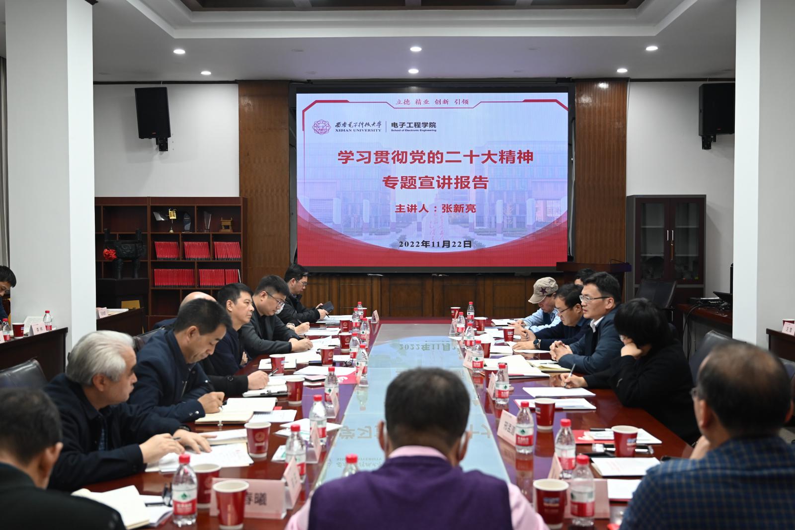 張新亮提出,學習貫徹黨的二十大精神,學深悟透是基礎、融會貫通是關鍵、全面落實是目的,學校將以第十三次黨代會召開為契機,把黨中央提出的戰略部署轉化為細化、可執行的工作任務,起草好黨代會報告,凝聚師生共識,團結奮進,開啟特色鮮明世界一流大學建設新征程。他希望,電子工程學院全體黨員師生要認真學習宣傳貫徹好黨的二十大精神,把思想和覺悟統一到黨中央部署上來,以國家戰略需求為導向,堅持黨的全面領導,不斷推進學校十四五規劃,踔厲奮發、團結奮斗、勇毅前行,為我國教育事業的發展貢獻更多力量。