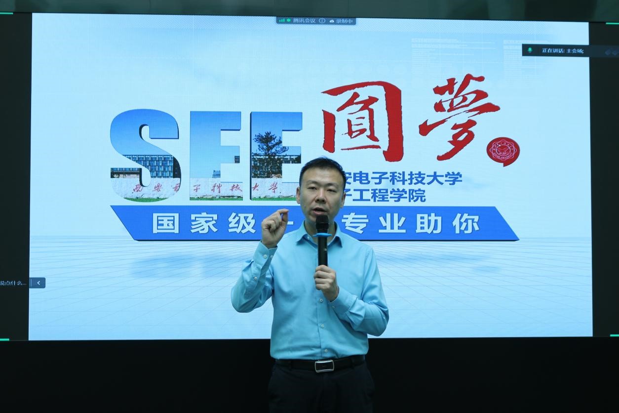 接下來,電子工程學院副院長李龍教授以學科導論課為依托,就電子信息學科、專業發展進行介紹,引導新生了解學科發展、大類專業特點,幫助大家合理選擇專業,制定本科學業發展規劃。以“國家級一流專業助你圓夢”為主題,李龍教授詳細解讀了學校學院歷史、學科分布、師資力量、科研平臺、人才培養目標、畢業生去向等,重點介紹了電子工程學院相互支撐的四個一流本科專業,簡要介紹了電磁波、信號及雷達等抽象知識的基本原理,語言生動有趣,講解通俗易懂。讓學生們的西電印象更加深刻,更加領會毛主席的題詞“你們是科學的千里眼和順風耳”。畢德顯、保錚、梁昌洪、孫肖子、毛乃宏、張榮橋、崔鐵軍等杰出人才的事跡,不僅展現了西電在電子信息領域為國家做出的卓越貢獻,更讓同學們感受到了所肩負的傳承榮光、報效祖國的重任。