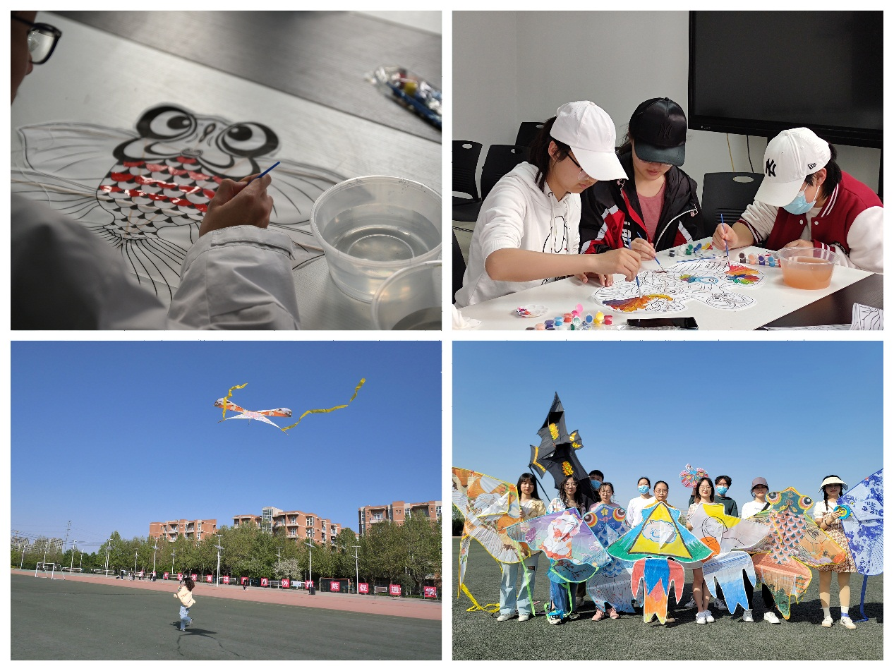 “兒童放學歸來早,忙趁東風放紙鳶”這應該是不少同學少年時期對風箏的記憶。風箏在我國擁有著兩千多年的悠久歷史,放風箏是非常受歡迎的一項活動。“彩繪風箏”分為風箏繪制和放風箏兩個環節。風箏繪制過程中,同學們發揮自己的創意,用五彩斑斕的顏色描繪出屬于自己的專屬風箏,尋找童年樂趣。利用周末的時間,攜伴邀友來到南校區操場,將自己的手繪風箏放飛上天,同學們手握線繩,牽引著形態各異、五彩繽紛的風箏,在操場上開心地奔跑、嬉鬧,緊張的學業壓力仿佛也隨風飄散。