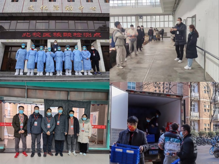 遙感科學與技術系任愛鋒、朱天橋和鄭春紅等老師配合北校區社區及各個樓管分發蔬菜、配合醫生入戶檢測核酸,他們的無私奉獻,是疫情防控中的動人風景,不斷筑牢著疫情防控的“社區防線”。