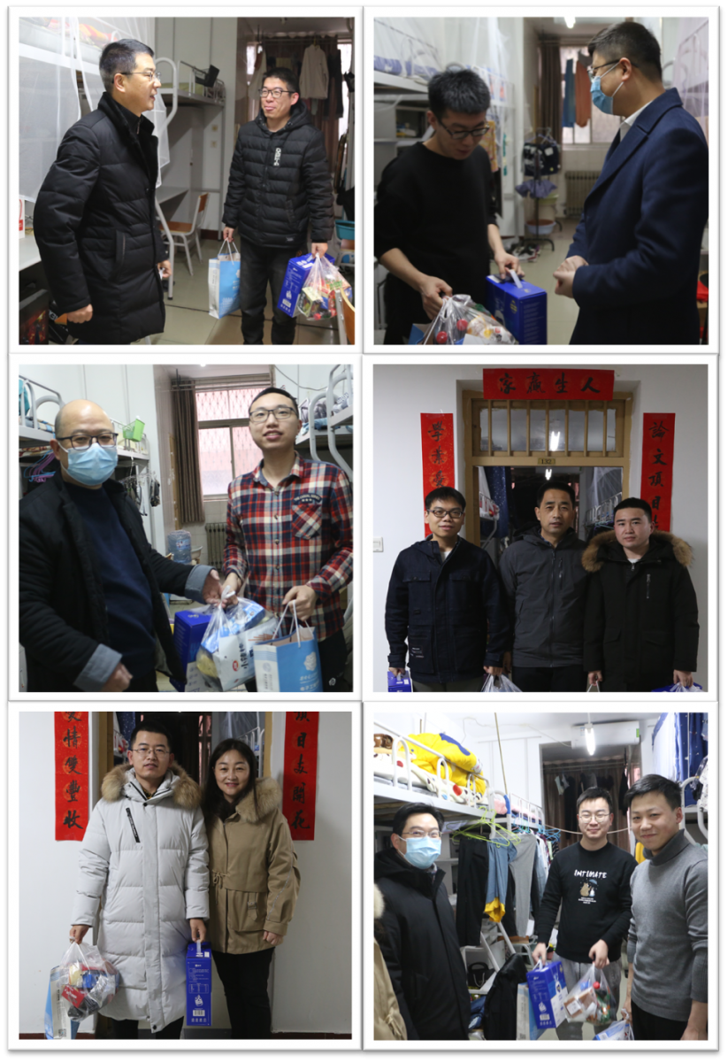 活動中,由學院領導親自給留校學生發放過年大禮包,走進宿舍慰問學生,了解學生的生活和學習情況,叮囑學生要和家長保持溝通,讓家長放心,學校和學院一定能讓大家在校如在家一樣快樂,過一個不一樣的虎年。此外,學院領導與同學一道,貼上了導師飽含祝福的手寫春聯,上聯“論文項目兩開花”、下聯“學業愛情雙豐收”,橫批“人生贏家”,大家在春聯下共同合影留念,讓遠離家鄉的學生們感受“家”一般的溫暖,體驗不一樣的春節。