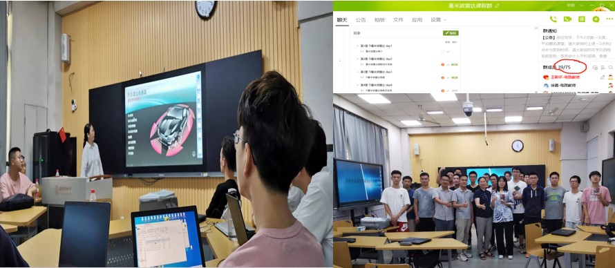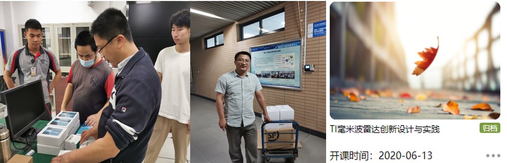 在全國率先面向本科生開設TI毫米波雷達創新實踐課程,首輪即有近70名同學選修該課,線上旁聽人數超過百余人,采用分組形式。2020新冠疫情期間,項目負責人親自將前期準備的77GHz毫米波雷達系統以及數據采集分析模塊通過順豐快遞寄送至全國各地家中的各組同學們。2021年國際雙創周采用智慧教室研討互動式教學授課方式。