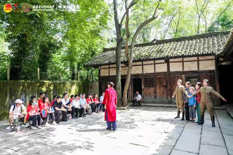 “1938年11月,國民黨軍統局設立了息烽集中營這個秘密監獄,選址息烽也是蔣介石迷信妄圖熄滅革命的烽火。”隨著“校史宣講員”2019級本科生陳奕霏的腳步,29日上午學院師生來到了位于息烽縣城南6公里的息烽集中營革命歷史紀念館。我校校友張露萍烈士就曾被關押在這里并不幸被秘密殺害。在監獄舊址,學院師生開展了沉浸式情景劇《信仰的力量》黨史學習活動,回顧張露萍烈士與獄友的揮淚訣別,現場不少師生忍不住流下了眼淚。學院黨委書記楊光暐帶領實踐隊全體師生緬懷先烈,并為實踐團講授實景微黨課。全體實踐隊員朗誦張露萍烈士絕筆詩《七月里的榴花》,感悟先輩為了革命英勇抗爭的精神,向巾幗英雄致敬!