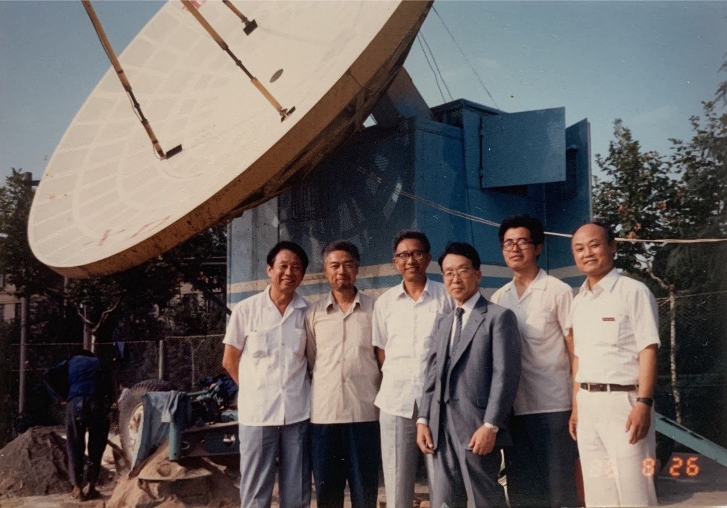 1961年,國家確定把六組任務移交到南京14所,派王蘊芳、吳養廉、賀勇和我四人去南京14所交接,我們把論證資料、設備器材、天線、雷達車運到了南京,在14所進行了技術交接和實地天線性能測試,達到論證指標。后因型號改變,1962年由南京回校時,將天線和雷達車運回了學校,安裝在大操場的東北角,用來接收衛星信號和給學生做示范教學。五米大口徑拋物面天線,是我校參加五十年代技術大會戰的標志性成果。