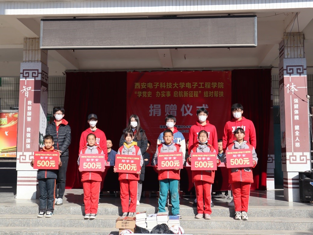 (通訊員劉昕雨)電子工程學院深入貫徹黨和國家關于鄉村振興的戰略規劃,在校黨委和校工會的指導下,強化組織領導,以支部結對共建的方式,加強黨史學習教育,以學黨史、悟思想、辦實事、開新局為目標,積極尋求鄉村振興和三全育人的連接點、共振區,強化聯動幫扶,為蒲城堯山鎮翔村九年制學校基礎教育和蒲城縣供銷合作社聯合社提升電子商務能力和信息化建設提供資源保障和智力服務。11月9日,學院班子成員、輔導員和學生代表前往蒲城,引資捐贈16.1萬元開展幫扶活動。