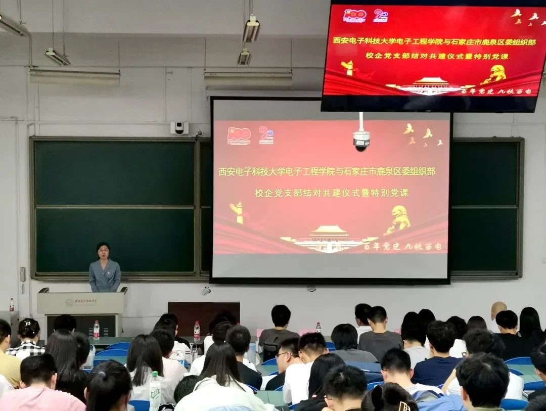 (通訊員張寧祥)值中國共產黨建黨100周年、西安電子科技大學建校90周年來臨之際,為豐富黨史、校史教育內容,創新黨建載體,擴展學生視野,5月25日晚,電子工程學院與石家莊鹿泉區組織部舉行了校企黨支部結對共建儀式。鹿泉區委組織部副部長、老干部局局長付志勇,非公工委張夢,人才工作科許嬌,電子工程學院黨委副書記劉建鋒,輔導員吳媛媛、張寧祥,以及本科2018級黨支部全體黨員出席了儀式。