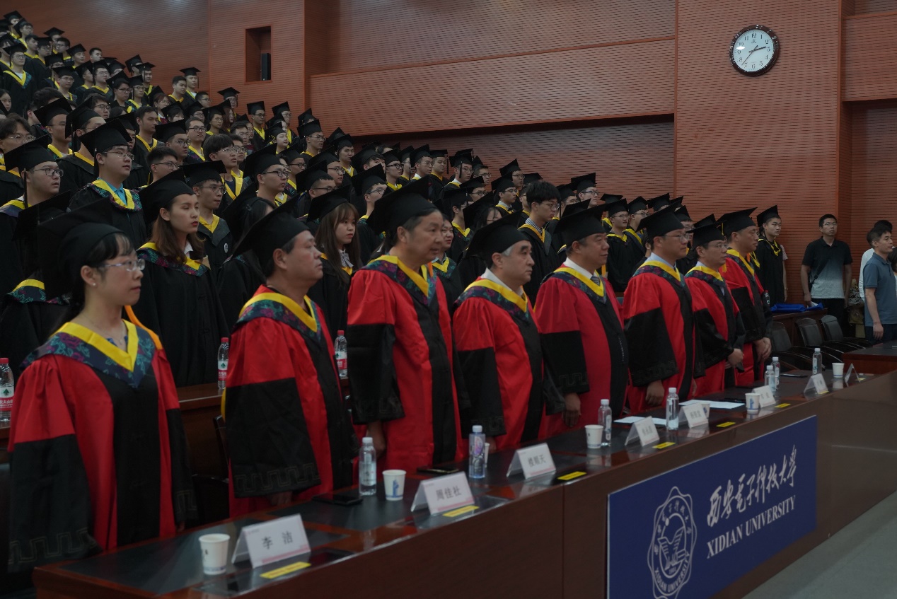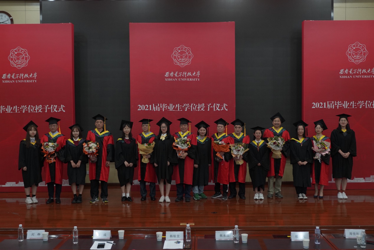隨后,校黨委副書記楊銀堂、學院教授委員會主席焦永昌、學院副院長鄧成和導師代表周佳社、樓順天、劉崢、董春曦、李潔、翟會清為全體本科畢業生撥正流蘇、頒發學位證書并合影留念。