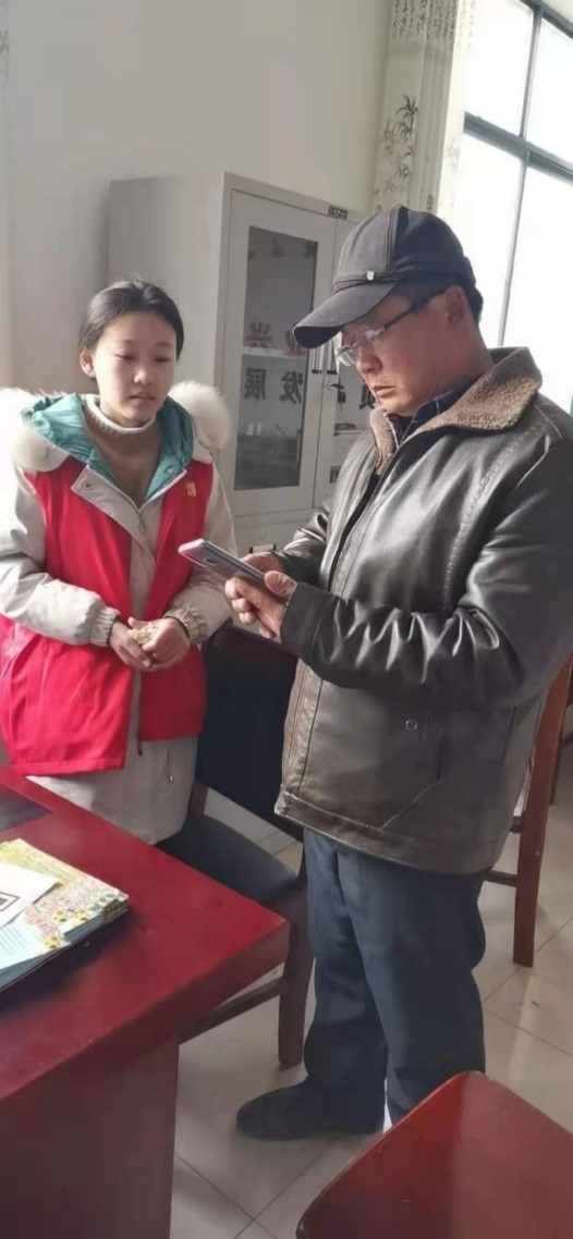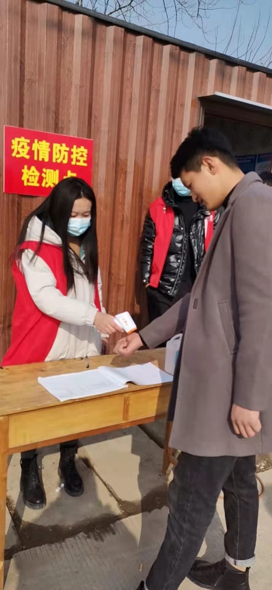 2021年寒假期間,靳碩靜同學主動請纓成為了一名志愿者,她表示在疫情面前挺身而出是我們青年的擔當,義不容辭。在服務期間,她主要承擔的工作有:在村居疫情防控檢測點進行值班值守,對出入車輛及其人員進行往返時間、地點以及身份信息登記、體溫檢測;為全市開展核酸檢測信息預登記作宣傳,幫助一些不懂如何進行信息登記的村民進行核酸檢測信息預登記;通過使用濟寧人社通軟件為60歲以上的老人進行電子社保卡的人臉識別認證等等。