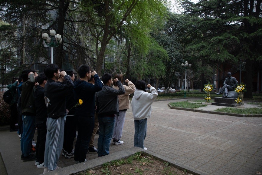 會后,班子成員帶領研究生支部書記到王諍校長銅像前進行祭掃活動,為銅像清掃洗塵、敬獻鮮花。在黨支部書記代表楊光照同志的帶領下,研究生支部書記在銅像前莊嚴宣誓:傳承老一輩西電人精神,愛黨愛國,艱苦奮斗、努力學習、自強不息、為實現祖國富強、民族振興和人民幸福貢獻青春力量。緬懷為民族解放、祖國強盛和西電建設做出貢獻的先輩王諍校長。