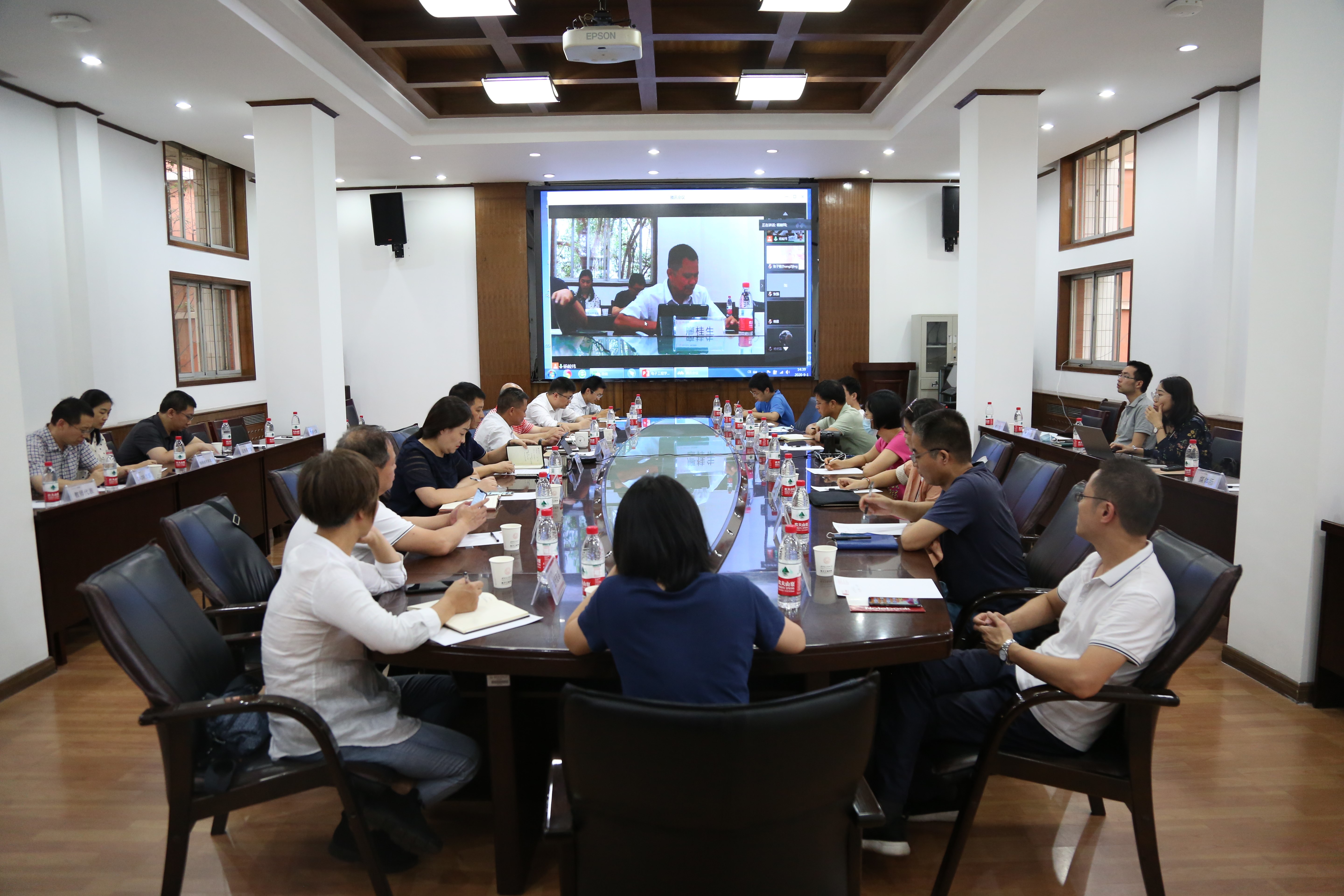 會議采取線上線下結合的方式進行,學院各系所主任、教職工支部書記和青年教師代表現場參加會議,其他教職工通過視頻會議方式參加。