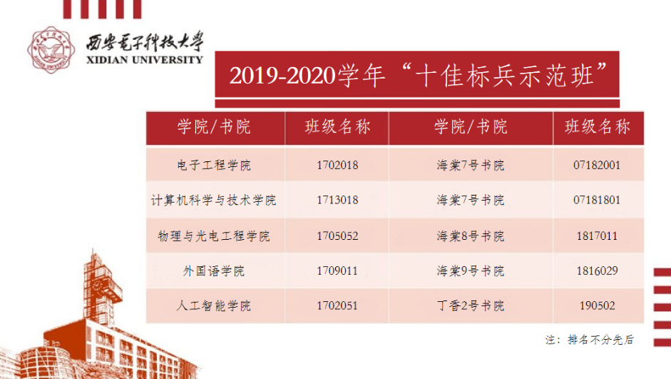 多年來,學院高度重視學風建設,認真落實大學生思想政治教育,扎實推動學生專業發展、社會實踐、素質提升,促進學生內涵式發展,引導學生自覺樹立成長成才的理想信念。不斷加強制度建設,以教風帶動學風,以管理促進學風,以榜樣引領學風,形成合力、持之以恒,不斷推動學風建設和人才培養再上新臺階。相信在1702018班的榜樣引領下,電子工程學院全體學生將傳承發揚電院的優良傳統,積極投身實踐創新、勇于探索前沿科技,在更加廣闊的舞臺上展現西電電院學子的青春風采。
