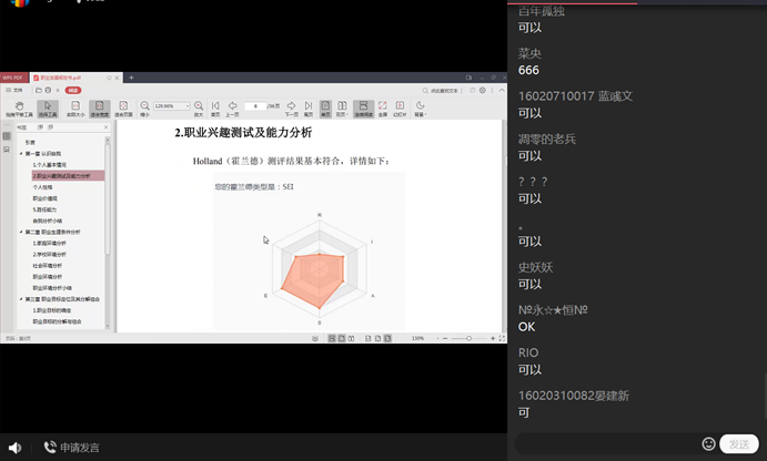 在講解過程中,黃老師通過有趣的實驗以及幽默的互動,真正讓同學們在參與中收獲知識;同時黃老師在職業規劃、簡歷制作以及面試技巧等環節均結合具體實例,例如:職業規劃獲獎案例解析、在線收集簡歷在線修改講解以及面試十問等,生動直觀的講解加深了同學們對于知識的理解,大大提升了同學們對于知識的實際運用能力。