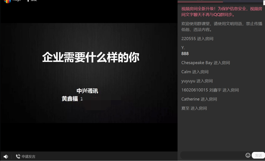 電子工程學院在此次活動中邀請到中興通訊政企關系總監、中興通訊黃金宣講官、中興通訊學院三級講師黃鑫福老師進行主講,中興通訊西北地區招聘總監劉朝蓉、電子工程學院黨委副書記劉建鋒、中興通訊西北招聘平臺經理王琳、電子工程學院全體輔導員以及學院2020屆應屆畢業生在線參與了此次活動。
