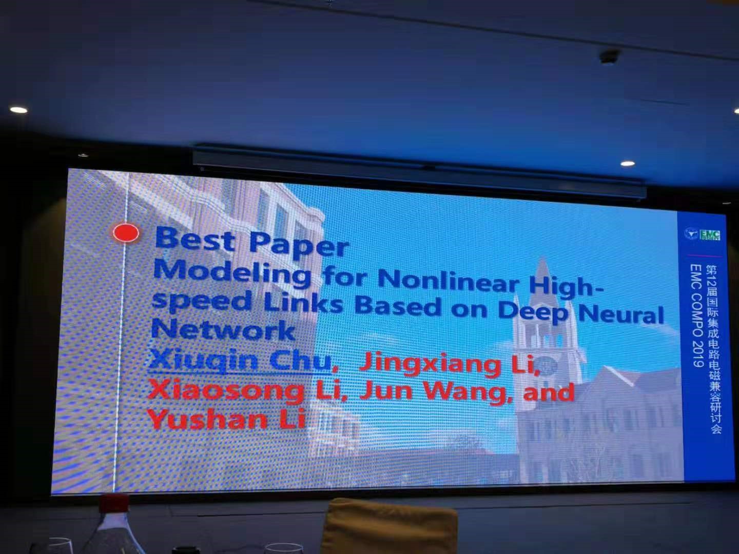 10月21日至23日期間,會議各個分會場分別圍繞大會主旨,開展不同主題的研討會和專題報告,會議投稿文章的口頭報告和海報展示環節也精彩紛呈。來自五湖四海的專家學者在此分享自己的研究課題和成果,交流探討國際電磁兼容領域的最新發展動態,也給從事 IC EMC 研究的同行們提供了許多建設性的建議和指導。為了鼓勵科研創新,大會評選出3篇優秀學生論文,2篇優秀論文,1篇大會最佳論文。其中,我校超高速電路設計與電磁兼容重點實驗室初秀琴團隊的論文“Modeling for Nonlinear High-speed Links Based on Deep Learning Method”獲得大會唯一的最佳論文獎,獲得大會優秀論文獎的分別是法國和日本的研究團隊。