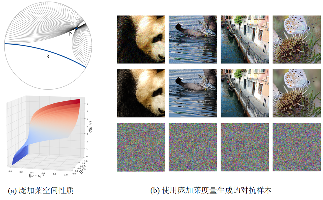 李茂森博士的“Towards Transferable Targeted Attack”提出了一種基于龐加萊度量與三元組損失的有目標對抗樣本生成方法。該方法首次發現并提倡目標對抗樣本不同于非目標攻擊的特殊性,解決了傳統目標攻擊方法中的噪聲固化問題,額外利用了常在目標攻擊中被忽視的真實標簽信息,有效提升了所生成有目標對抗樣本的遷移能力。