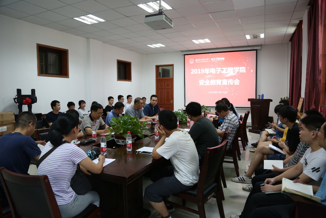 (通訊員 郝瑞)2019年7月13日上午10時,在西大樓三區109會議室召開了“電子工程學院安全教育宣傳會”,通過貫徹落實教育部、省委高教工委安全工作相關文件精神,臨近暑假前做好我院各類安全培訓,確保各項工作安全有序進行。副院長孔東出席了會議并邀請各重點實驗室和各系所安全責任人以及學生代表參加,會議由辦公室主任楊峻瑋主持。