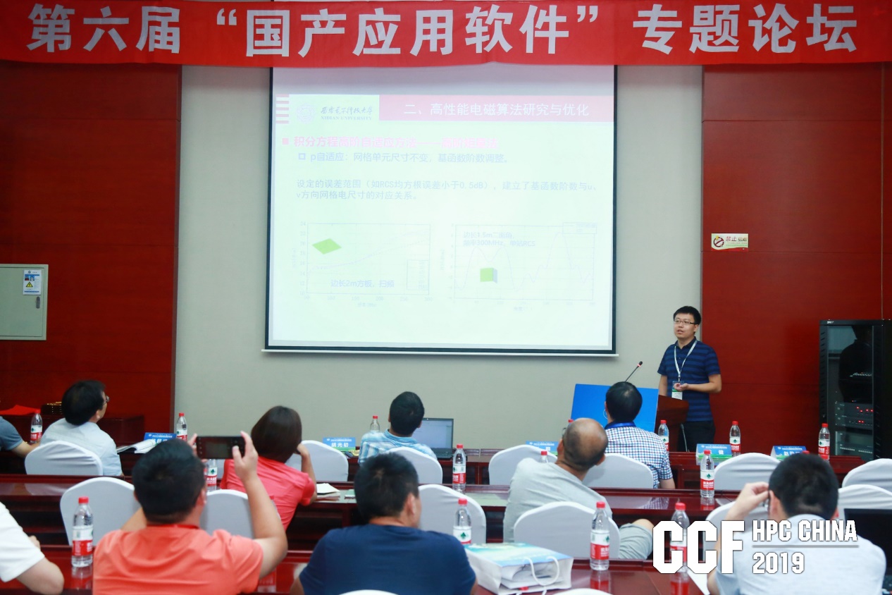會議期間,趙勛旺老師等人受邀分別在“國產應用軟件”、“通往E級計算的應用之路”、“航空航天領域高性能計算應用”等論壇作了專題報告,介紹了西電在超大規模電磁計算算法體系構建、國產自主高性能電磁應用軟件研制、軟件重大工程應用等方面取得的重要成果,并與高性能計算和工業領域專家就國產軟件研制與應用進行了深入交流。