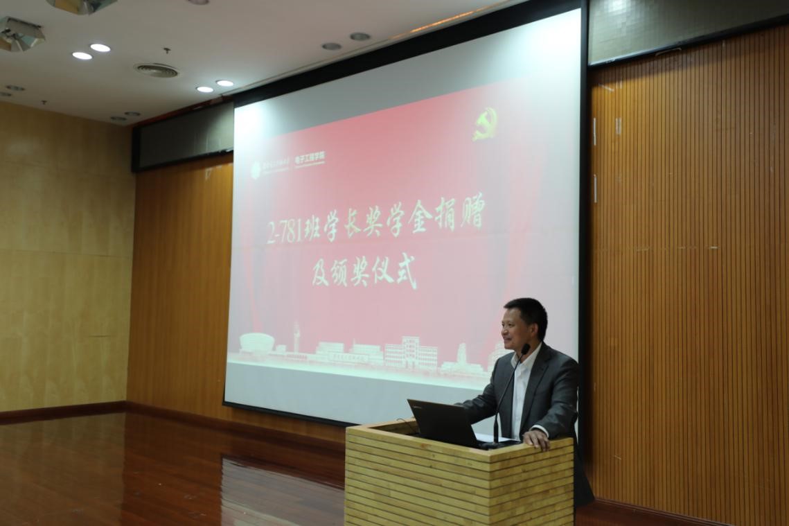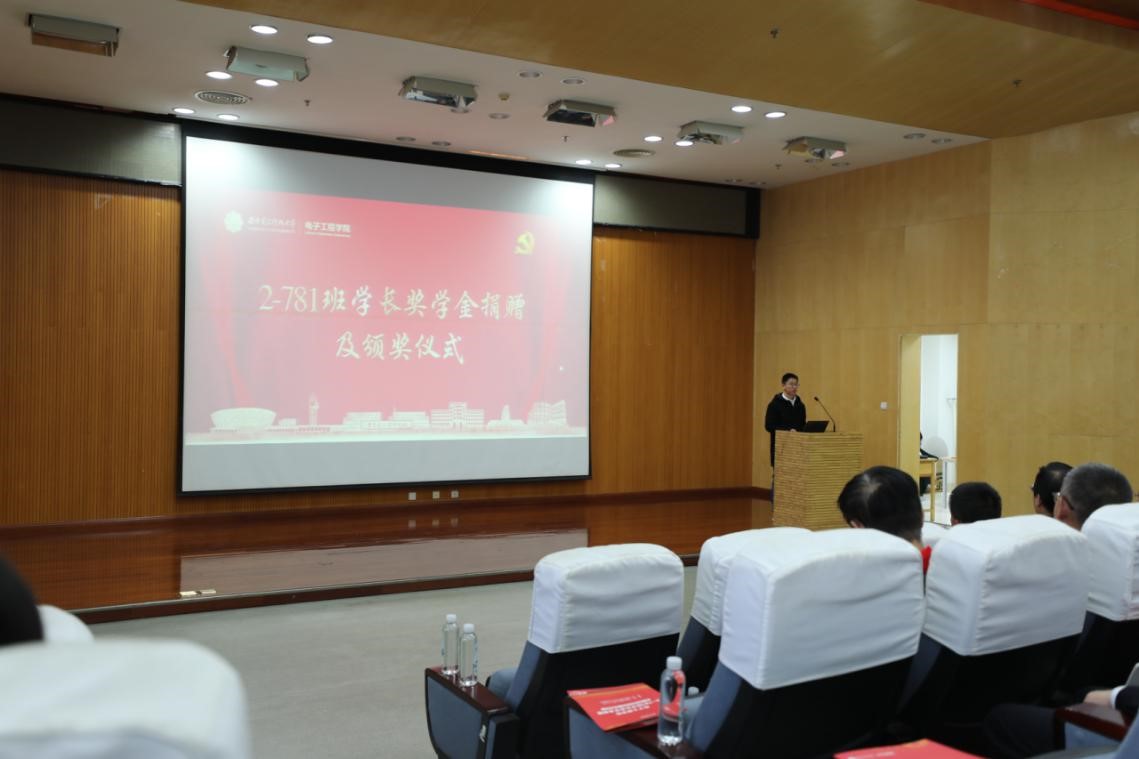(通訊員:趙彤璐 劉建鋒)10月19日,電子工程學院“2-781班學長獎學金”捐贈及頒獎儀式在南校區圖書館A402報告廳舉行,電子工程學院黨委副書記劉建鋒主持捐贈儀式。西安電子科技大學副校長高新波、電子工程學院院長廖桂生、電子工程學院辦公室主任楊峻瑋出席會議。2-781班二十七名校友、電子工程學院2017級全體輔導員及200余名學生代表參加了捐贈儀式。