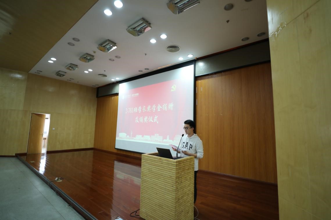 2018年獲得“2-781班學長獎學金”的劉惠民同學作為2016級獲獎學生代表發言,匯報一學年以來的學習情況:2018年獲獎學金的17名同學中有15人已獲推薦免試攻讀研究生資格,2人放棄推薦免試資格準備出國深造。今年7月劉惠民將自己獲得的“2-781班學長獎學金”的8000元全部捐出,用于獎勵蒲城翔村中學十名品學兼優的學生。今年獲得“2-781班學長獎學金”特等獎的刁偉豪同學代表所有獲獎學生對2-781班校友們給予的關注與支持表示衷心的感謝。他說獲得獎學金并不是終點,而是漫長求學道路上的前進動力,在喜悅之余更應再接再厲,爭取獲得更高的成就。