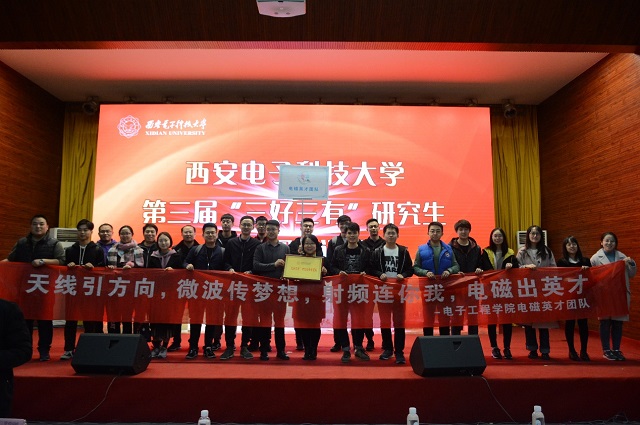 “電磁英才“團隊能獲此殊榮,一方面源自其扎實的團隊實力和各位團隊成員的認真努力,另一方面也離不開學院、老師們的鼎力支持。在歷時6個多月的準備過程中,電子工程學院對本次“三好三有”團隊評選給予了高度的重視及全方位的支持。團隊的劉英老師更是在團隊準備的每一個環節都積極參加指導,不斷完善展示內容,力求做到盡善盡美。利用貼近團隊工作生活的故事及團隊同學精彩的表演,團隊在評選舞臺上生動地展現了“電磁英才”團隊工作科研、老師指導、課余活動的方方面面。本次“‘三好三有’研究生導學團隊”稱號的獲得,既是對學院研究生培養和管理工作的肯定,也是對“電磁英才”團隊良好的師生關系及培養模式的認可。