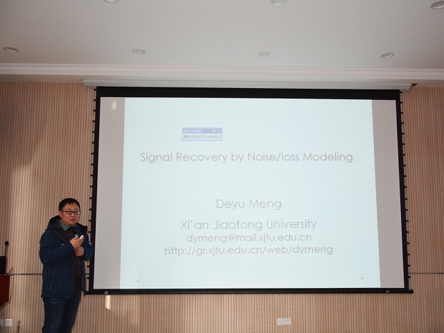 接著,孟德宇教授作了題為“誤差建模原理”的報告。他的報告聚焦于如何針對包含復雜噪聲的數據進行誤差建模的魯棒機器學習原理,并成功應用于在線視頻處理、圖像恢復等領域,已體現出個性化的應用優勢,該原理亦有希望能夠引導出更多有趣的機器學習相關應用與發現。