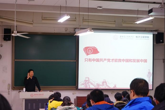 徐克老師以《大學生為什么要加入中國共產黨》為題,引導廣大同學認識黨的正確性、偉大性,教育同學端正入黨動機,樹立堅定理想信念。徐克老師從電子信息行業內著名西電校友談起,鼓勵廣大同學向西電先輩學習,樹立遠大目標,勇做行業骨干和引領者。徐克老師從“國家不能脫離一定的社會制度獨立存在”、“共產黨的產生歷程”、“中國共產黨是什么樣的政黨”、“新時代中國特色社會主義建設”等多個方面闡述了大學生加入中國共產黨的重大意義。