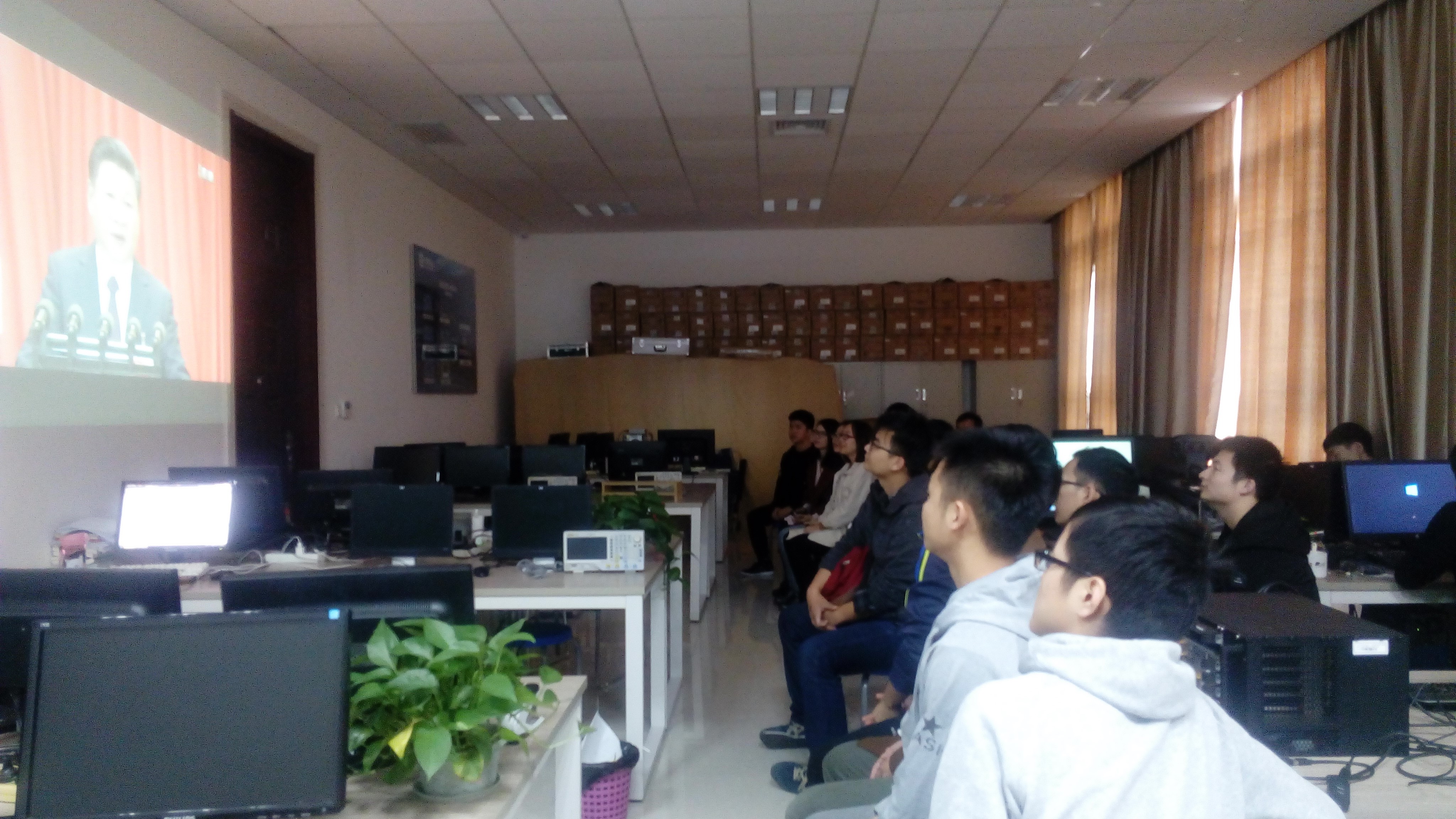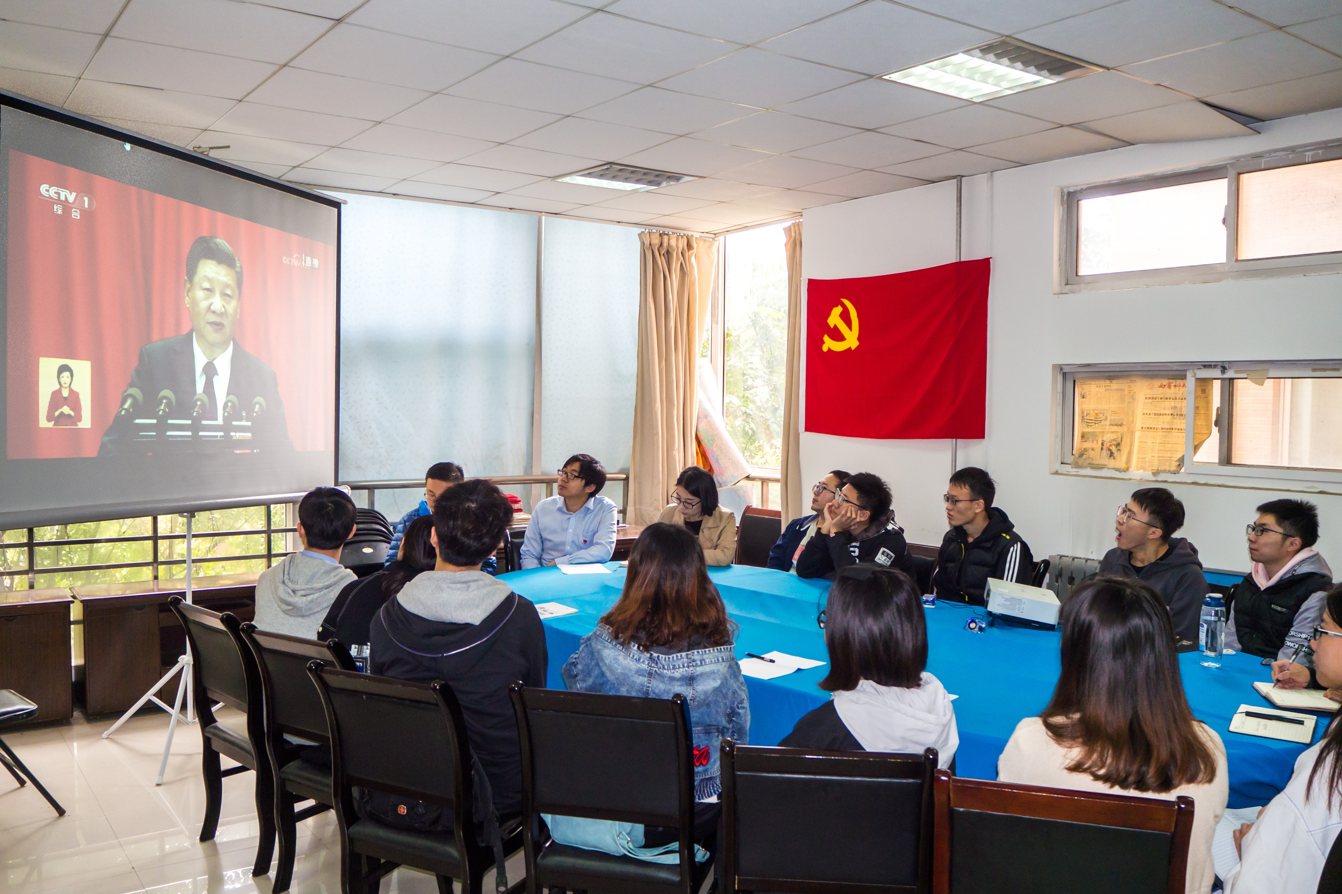 (通訊員:鄧鑒楊笑宇劉昕雨)10月18日上午九點中國共產黨第十九次全國代表大會在人民大會堂隆重開幕,電子工程學院黨委組織領導班子成員和機關辦公室全體人員在西大樓三區109集中收看了十九大開幕式盛況,并安排全院師生以黨支部為單位,集中觀看并認真聆聽了開幕直播,部分出差在外的教職工也紛紛利用電腦、手機第一時間收看開幕式。