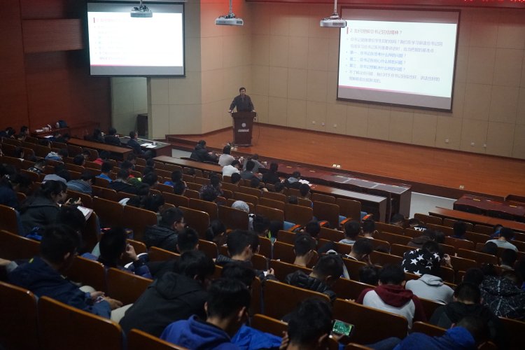 整場報告會,夏永林教授邏輯清晰,旁征博引,分析透徹,說理嚴謹,“青年興則國家興,青年強則國家強。青年一代有理想、有本領、有擔當,國家就有前途,民族就有希望。中國夢是歷史的、現實的,也是未來的;是我們這一代的,更是青年一代的。中華民族偉大復興的中國夢終將在一代代青年的接力奮斗中變為現實。全黨要關心和愛護青年,為他們實現人生出彩搭建舞臺。廣大青年要堅定理想信念,志存高遠,腳踏實地,勇做時代的弄潮兒,在實現中國夢的生動實踐中放飛青春夢想,在為人民利益的不懈奮斗中書寫人生華章!”最后,夏永林教授借用習總書記在十九大開幕會上對青年的論述結束了本場報告會,引起在場同學的持久掌聲。